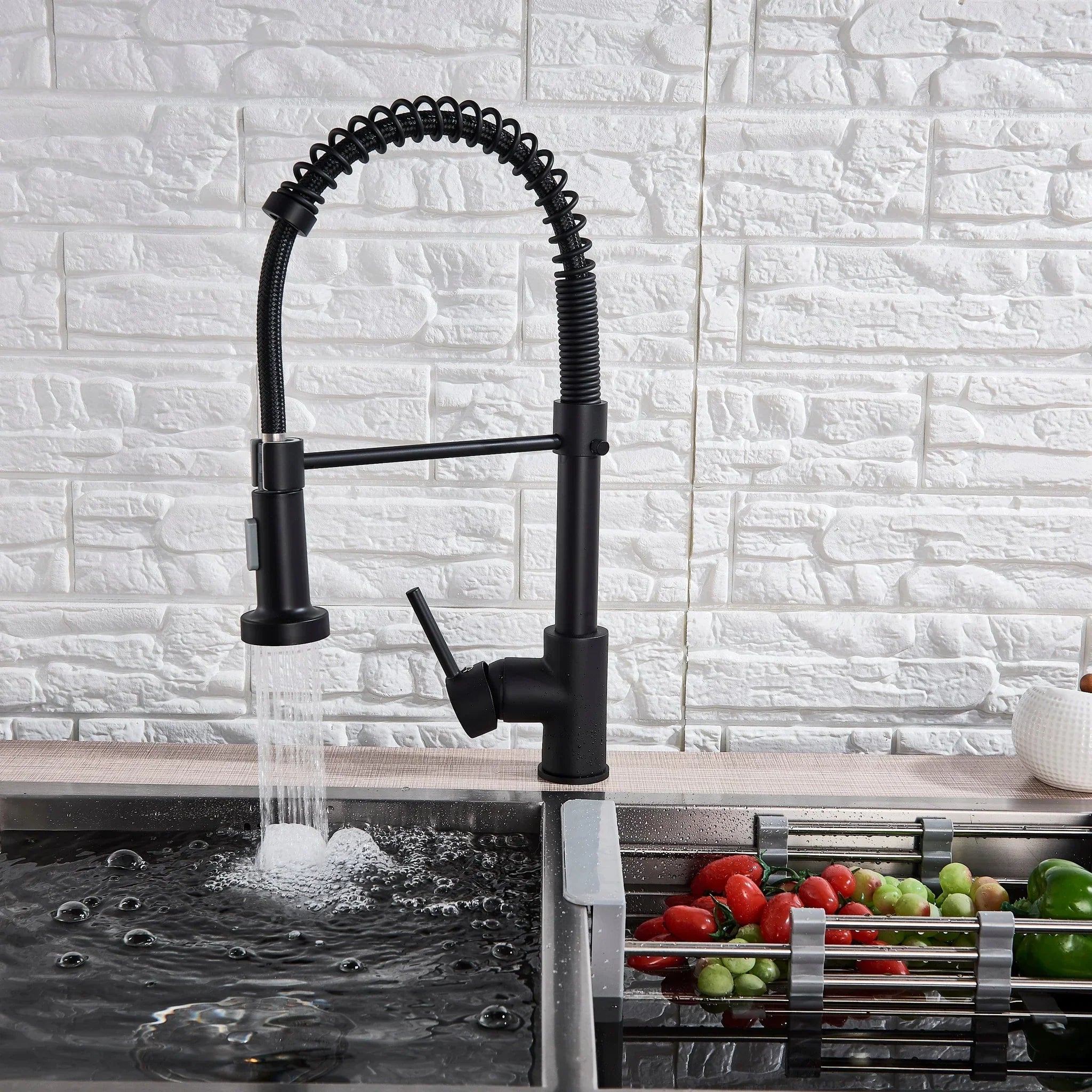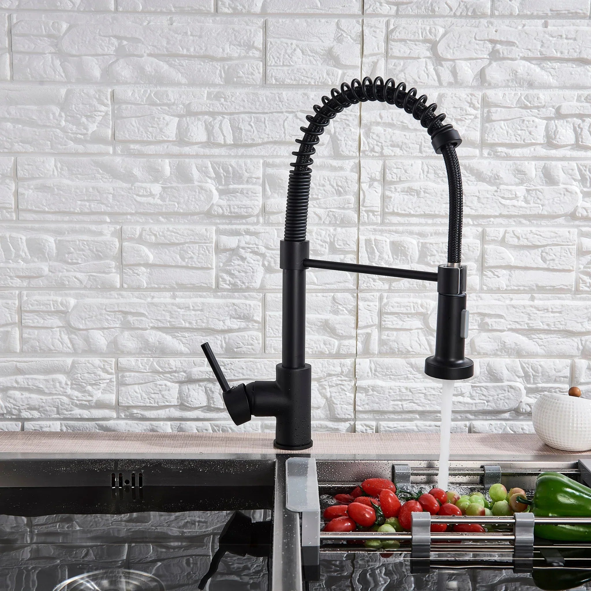Baterie de bucatarie retractabila, rotire 360 grade, negru, montare pe blat