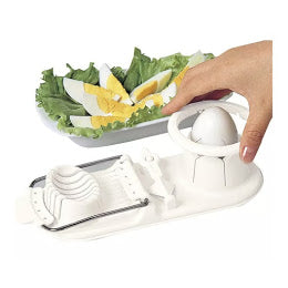 Aparatul pentru feliat oua este realizat din plastic rezistent iar lamele sale subtiri si ascutite permit felierea oului dintr-o singura miscare.