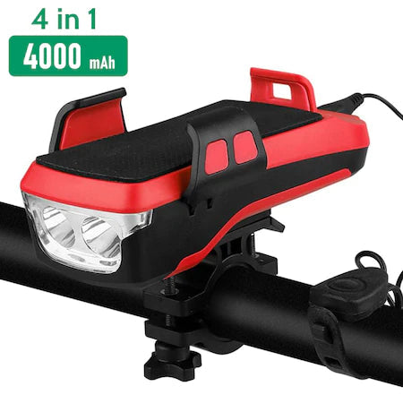 - Lanterna, de asemenea, are funcția de acumulator extern, claxon și suport pentru telefon.